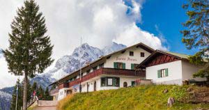 Bekannt ist die Hütte für seine Terrasse mit Aussicht auf das Wettersteingebirge. Aber auch das Essen soll sehr gut sein. Geöffnet von 10-17 Uhr. Freitag ist Ruhetag, aber nnicht ganzjährig. Bitte vorher erkundigen.