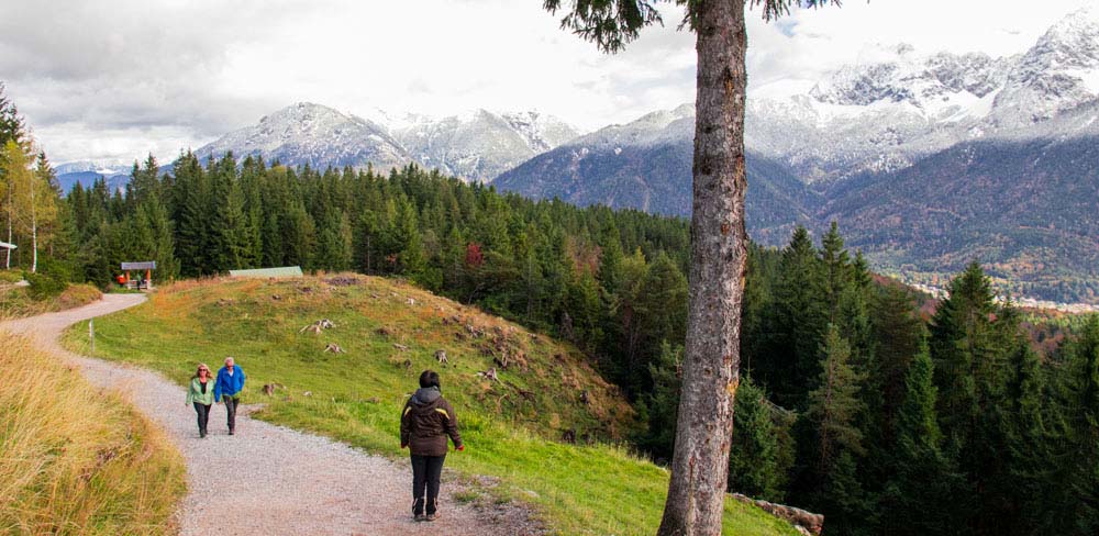 Mit 1391 Metern ist der Kranzberg deutlich kleiner als das Wetterstein- oder das Karwendelgebirge auf der anderen Seite. Allerdings macht ihn das auch zum beliebten Familienberg und dementsprechend gut sind die Wanderwege und Lifte ausgebaut. Besondere Highlights sind natürlich die Wanderungen zu den Seen und Hütten, die immer begleitet werden von den traumhaften Aussichten auf die Gebirge. Der beliebteste Startpunkt ist die Talstation des Sesselliftes. Von hier führt ein gut ausgebauter Weg nach, der erst durch Latschenwälder führt und dann durch einen Buchenwald. Bei 1200 Metern kommt die Korbinianhütte, die schon recht früh zu einer Rast einlädt. Das unterbricht die ständige bergauf Wanderung und das Essen soll sehr gut sein. Noch besser ist aber die Aussicht auf den Lautersee, die Ederkanzel und die Wettersteinspitze.