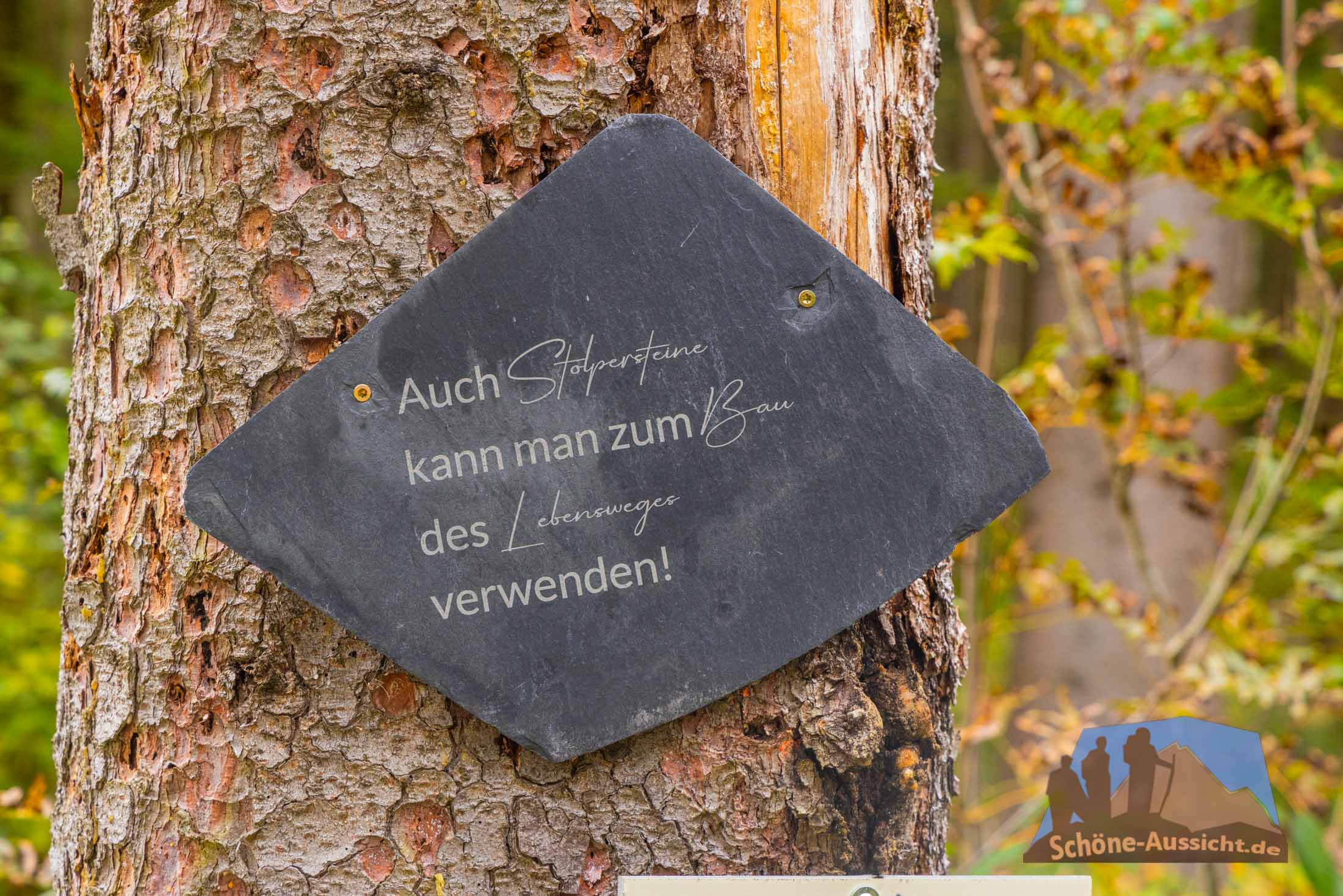 Spannend war ebenso, dass man hier viele Details eingebaut hat. Kleine, halb versteckte Infotafeln, die auf charmante Weise mit Sprüchen bestückt waren. Auch sonst wirkte alles gut durchdacht und wurde mit weiteren Wanderwegen, sowie Infopoints kombiniert. Das macht diese Wanderung sehr kurzweilig. Aus meiner Erfahrung machen das meist nur Einheimische mit viel Herzblut für ihren Ort.