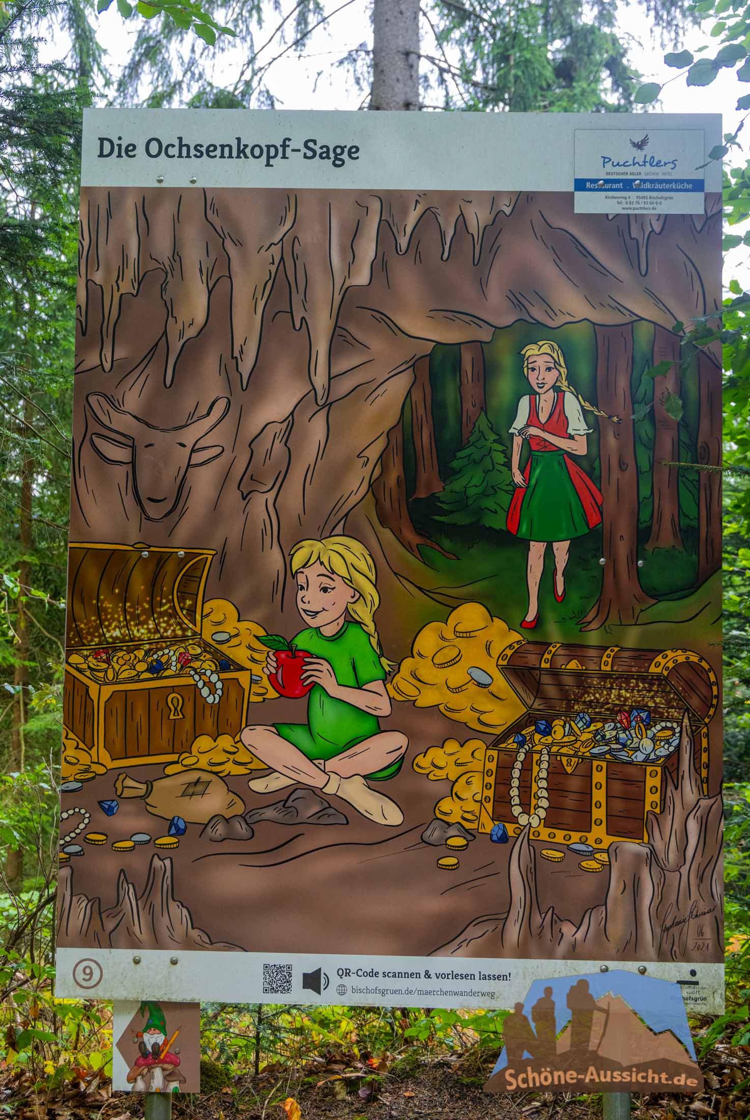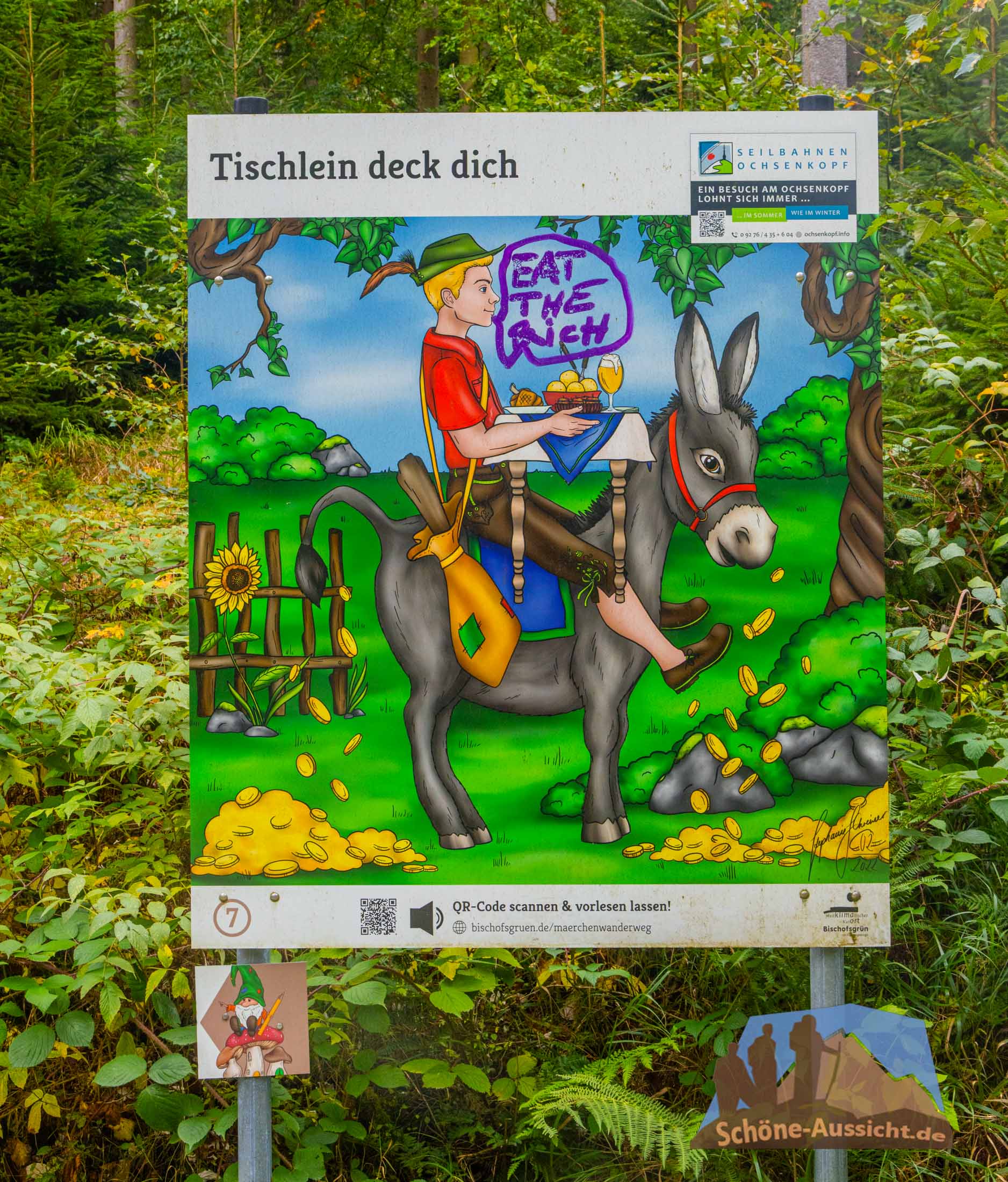 Heute muss man den Kindern schon etwas mehr bieten, als nur einen schnöden Wanderweg. In Bischofsgrün setzt man beim Märchenwanderweg auf aktive Hörspiele zu jeder der Märchentafeln. Mit QR Code kommt man auf die Webseite und die Kinder können so die Geschichte zum Märchen hören.